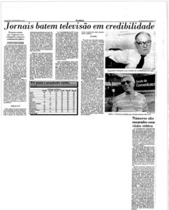 Os leitores têm uma boa notícia para dar aos jornais. Segundo o Ibope, a população confia mais nos jornais do que na televisão. Além disso, a imprensa tem mantido estáveis os índices de confiança popular que já carregava antes que se desencadeasse uma desconfortável crise de credibilidade para a maioria das instituições relacionadas com o dia-a-dia do cidadão. Além da permanência do rádio na vanguarda do ramo das comunicações e do sempre forte prestígio da Igreja entre os brasileiros, trata-se de constatação mais notável incluída na tabela de evolução da confiança da população em órgãos e instituições montada durante a semana pelo diretor do Ibope Henrich Ulrich.